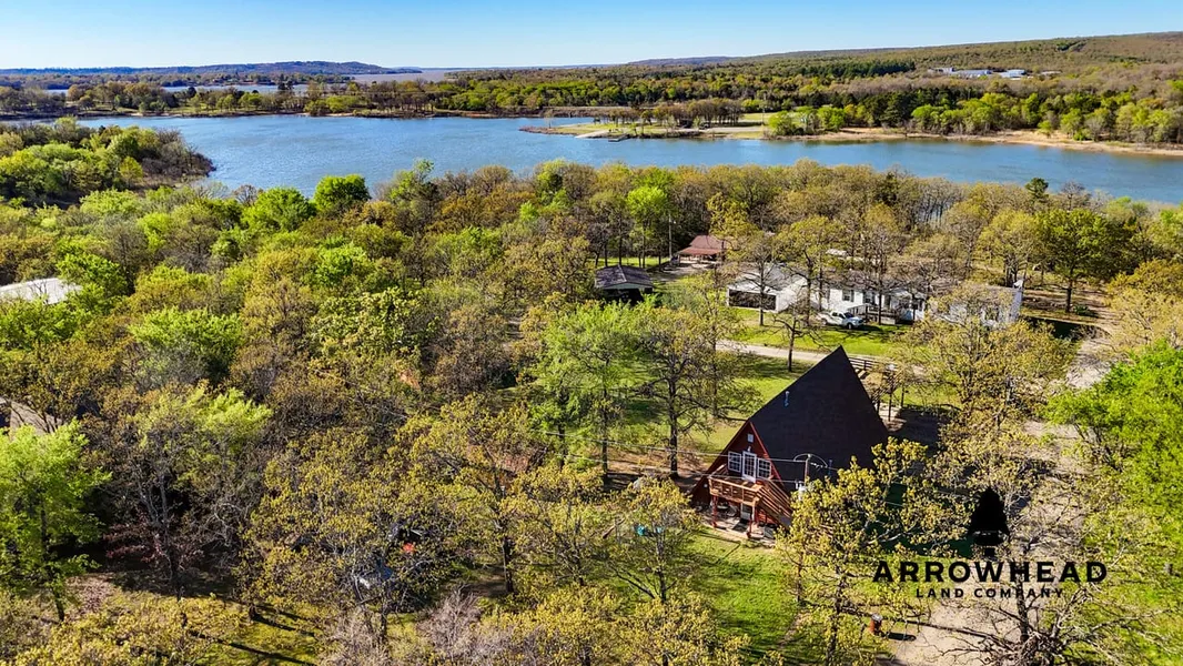 PRICE REDUCED! Take a look at this gorgeous A-Frame Cabin on 1.0 +/- acres, just under a minute's walk to Eufaula Lake. This stunning cabin is 2,585 Sq Ft with 3 beds and 2 baths and sits on one of four 0.25+/- acre lake lots. The cabin is so unique, providing a beautiful master bedroom that has a private deck overlooking the lake. Dual staircases are also provided in the cabin, as well as recently installed carpet and a 2-year-old roof. Additionally, a private dock is included with the property, only a minute's walk from the cabin! A storage shed is also included, perfect for lawn mowers, and a 2-stall carport is provided. What's unique about this property is that you can rent it out as an Airbnb or even build little cabins for renting out or family retreats! Don't miss out on owning a one-of-a-kind lake cabin! Located just 13 +/- minutes from Eufaula, and 35 +/- minutes from McAlester. All showings are by appointment only. For more information or to schedule a private viewing, please contact Steele Schwonke at (918) 424-6065 .