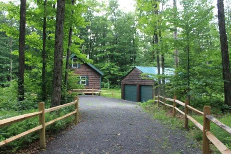 Large 4 door garage (front and back) for all the toys! Long gravel driveway, manicured campsite very clean and set up perfectly for weekend getaways either riding the trails, hanging by the campfire, or hunting whitetail, bear, turkey and grouse.