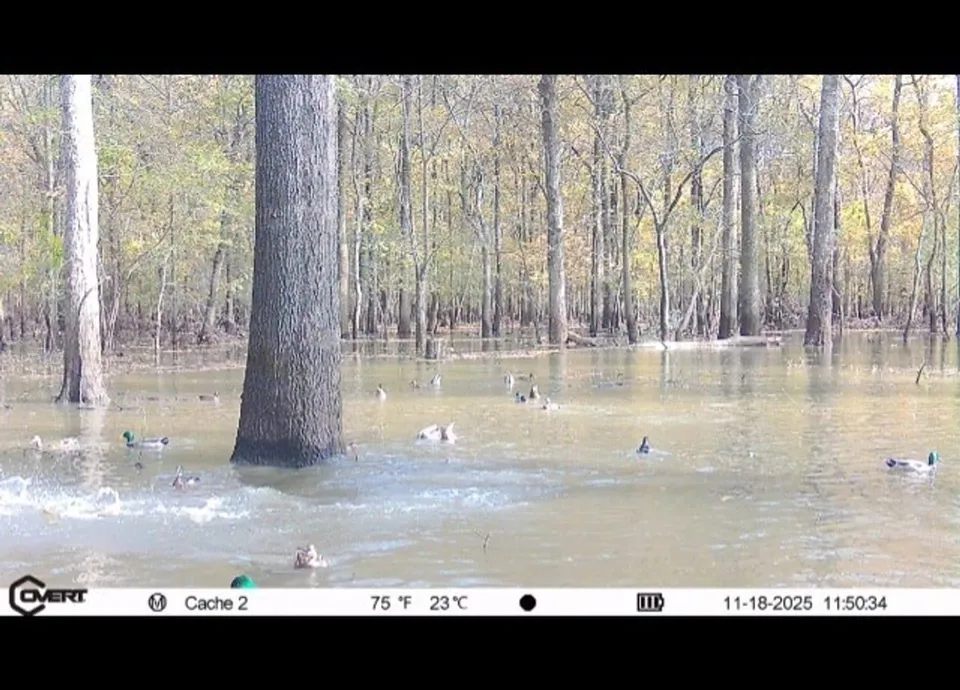 One especially unique feature of this property is its ideal terrain. While it may not flood boundary-to-boundary by pump, the benefits are twofold. First, the slight ridges allow for the growth of red oak timber—such as willow oaks and pin oaks—that produce acorns ducks actually feed on. This type of habitat is rare today, as many oak flats have converted to overcup oaks, which offer cover and loafing habitat but little usable mast. When the Cache River rises, these ridges flood, offering acorns and fresh access to aquatic invertebrates. The elevation changes in the field system also let you plant food at different levels, giving ducks new habitat as water levels shift. Strategically placed fields on both sides of the timber add to the tract's appeal. The elevation also gives hunters a place to stand when the river is high—eliminating the need for numerous high-water blinds. When the Brasfield gauge reads around 25.5, nearly the entire tract is flooded, with only the northern portion of the field remaining dry—making it a perfect lodge site with views over your waterfowl food plots. Electricity is already present at the parking area, so extending it to a lodge site would be easy. Or, if preferred, you could build at the parking lot itself, where electric access is already in place.