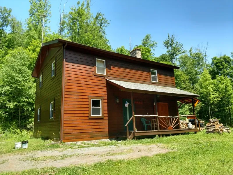 The PERFECT Camp, Starter or Retirement Home on over 22 acres of PRIME land. This two story custom built cabin features the privacy and seclusion you expect from a Country Home, Hunting or Recreational Property. Having a large open area floor plan complete with kitchen downstairs. And 3 Bedrooms and a Full Bathroom with soaking tub and stand up shower upstairs. The home features exposed timber beams, nice laminate flooring throughout, ceiling fans, double pane windows, gorgeously stained and polyurethane exterior wood siding, high efficiency oil hot water heat and back up wood stove heating. Poured concrete foundation with dry crawl space basement. The property includes a heated two bay garage with workshop and attached lean-to. Plenty of room for boat or RV parking. Perfect for family gatherings! Approx. 4 miles to Guilford Lake with Boat Launch and Fishing Access for Trout and Bass. Chill out on the covered front porch and BBQ. Hop on your ATVs and ride trails covering over 22 acres of beautiful woodlands and lush fields. Plant food plots for deer & turkeys or raise crops, beef cows or pasture horses. You will never get tired of exploring the land. Obvious potential for a stone quarry with large moss covered rocks throughout the woods. Owner will include about 10 face cord of split cured hardwood for the woodstove or camp fire. You are not going to want to hesitate to see this one!