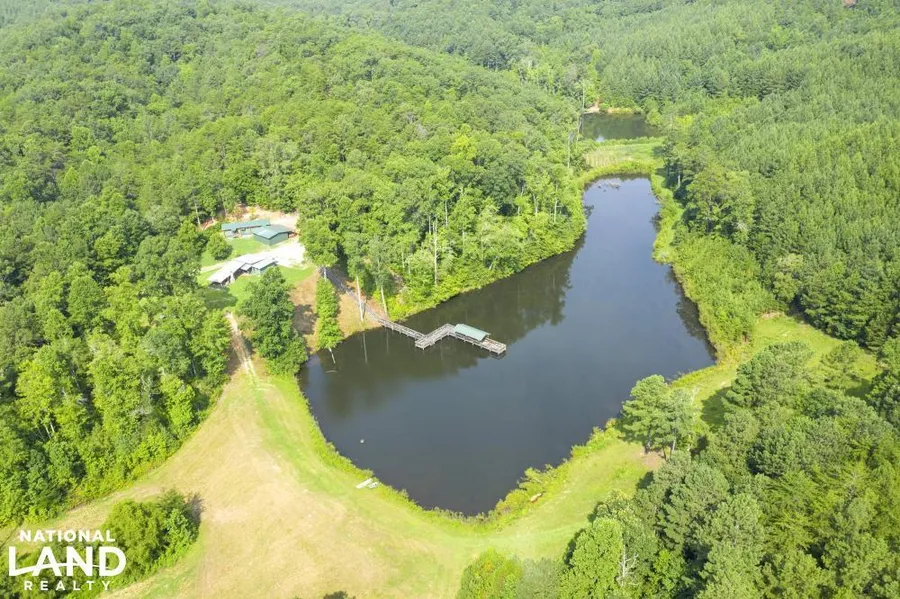 This secluded retreat has a cabin and trailer, marketable timber, stocked ponds, food plots, and miles of ATV trails. Property is located minutes north of I-20 halfway between Atlanta and Birmingham. The west boundary (3/4-mile) borders the Talledega National Forest. Cane Creek comprises most of the east boundary. Pristine creeks meander through scenic landscapes throughout. Food plots ( 25 acres) with ladder stands and shooting houses support abundant deer and turkey populations and offer terrific hunting opportunities. Well-maintained roads and ATV trails (10+miles) connect all areas of the property. Three ponds ( 10 acres total) with piers and solar-powered feeders offer superb fishing for largemouth bass, bream and hybrid striped bass. Over 90% of the property is timberland with approx. half in pine and half in mature hardwoods; the balance is comprised of the cabin area, ponds, food...