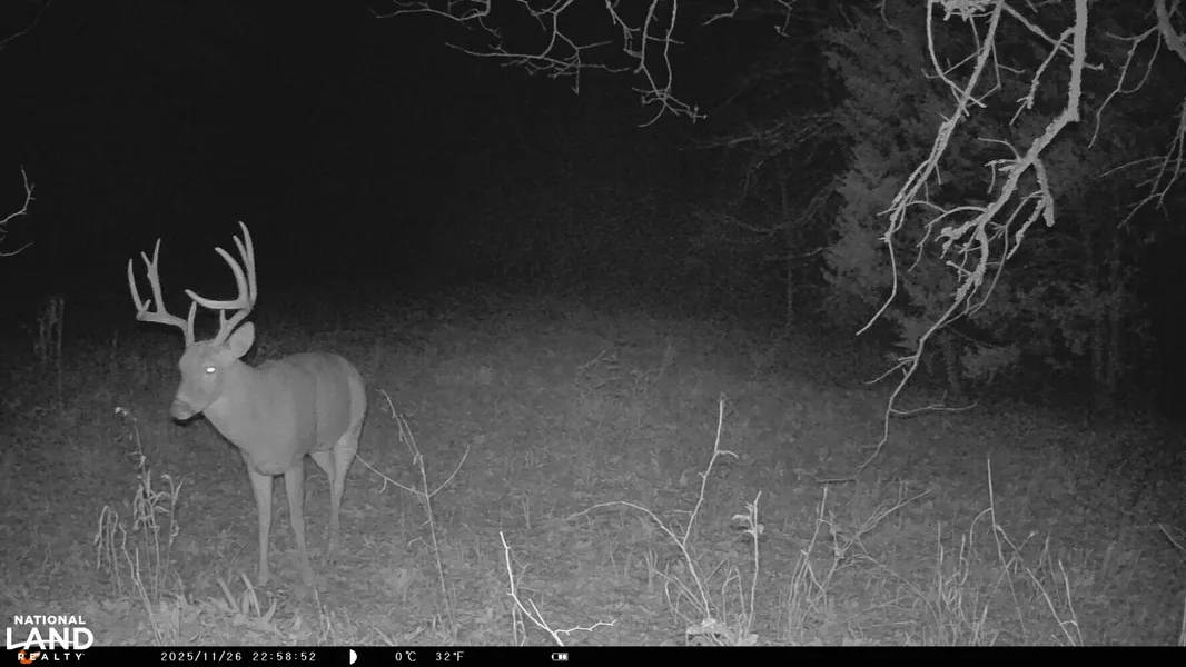What more could you want? Caney Creek offers high ground with great views, 15+ acres of fertile bottom ground for Boone and Crockett food plots, a year-round creek, and massive hardwoods. As you come in from the East, you have electric at the road, and the boundaries are cleared on the North and South. An older cabin sits by the road as well. As you head west, you have sandy soils with smaller timber, plum thickets, and most of this area has been terraced, a reminder of the old farm country in this area. About halfway, you come to the new switchback road that drops 120 feet into the creek bottom. Here, you feel like you entered an entirely different property. There are massive, Red Oak, Walnut, and Sycamore trees in this bottom, along with the open area full of fescue and soils ready to plant the food plot of your dreams. Next, you come to Caney Boggy Creek, a year-round creek full of wildlife of all kinds. The creek crosses the property from North to South, then gives way to more remote hardwoods as you climb up out of the bottom to reach the East Boundary. Stay tuned for more pictures! The cameras have only been out a short while. So far, we've seen plenty of big hogs, and the big bucks are starting to show up as well.