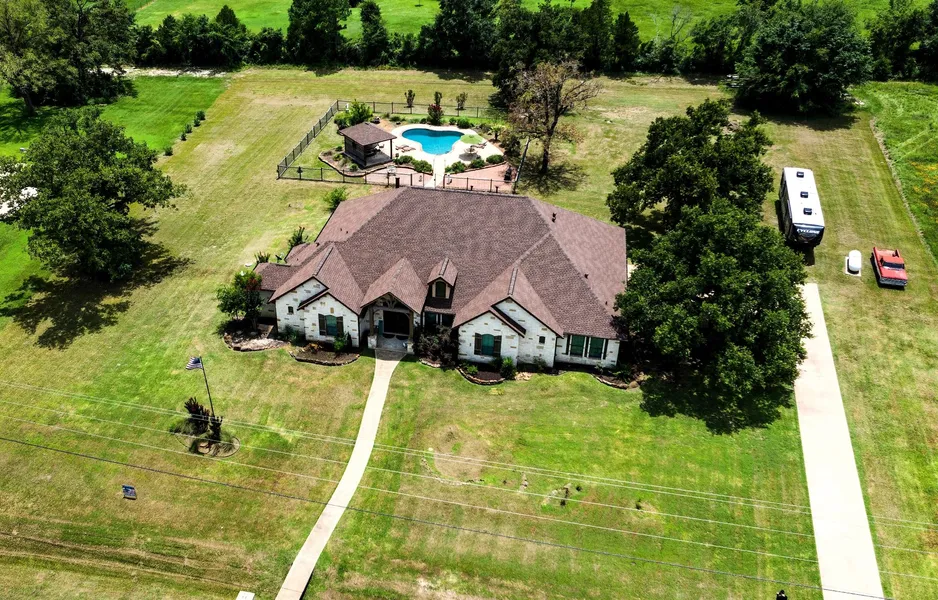 This gorgeous 2 Acres includes a dedicated Pool area with custom Decking, Outdoor Kitchen and beautiful