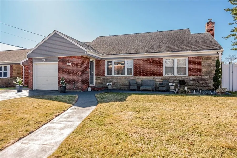 There is a patio in the front which is ideal for sitting out and just relaxing. The living room is open to the dining room which is open to the large kitchen. There is plenty of natural light and an open and airy feeling. The first floor has the primary bedroom, a second bedroom and a full bathroom. The second floor has two bedrooms and a full bathroom. All the bedrooms have ample closet space and the second floor hallway has additional storage space. The finished basement offers you more living space with many possible uses. The updates were all done in the past five years and the home is well maintained. There is nothing for you to...
