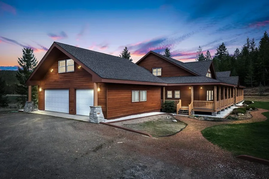 Multigeneration estate! This is the perfect set up for all the family or extended family. Three master suites on the main level with their own bedrooms and bathrooms and spacious storage. Open concept living room and dining room for large gatherings around the fireplace or absorbing the view of your very own indoor regulation riding arena with tack rooms, and 24 stalls. Bring all the animals to roam the pastures with a creek meandering through. There is another bedroom suite upstairs and a soundproof theater. Bring the popcorn! If that isnt enough room for you, come put your finishing touches on the almost 3000 sq. ft. log home. Far enough to complete it for extended family or a rental! This estate is in two separate parcels so two family member may have tax benefit for their own parcel. Easy travels to Coeur d Alene or Sandpoint! So many possibilities for this grand estate.