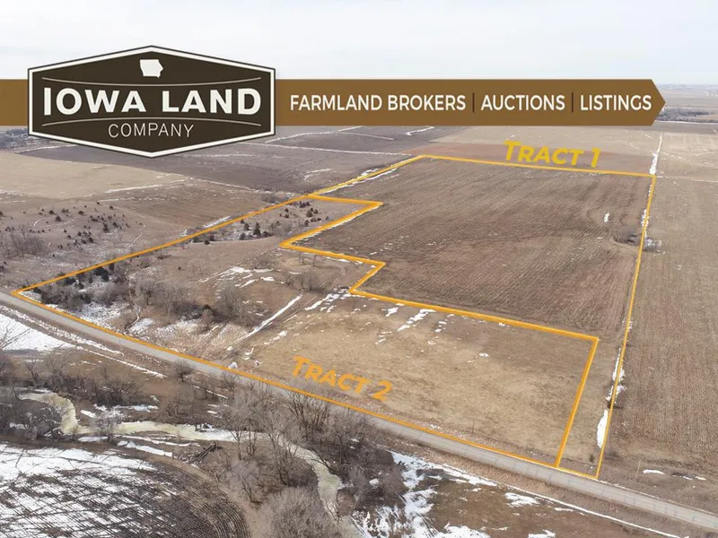 Iowa Land Company is honored to represent the Zimmerman Family Farm in Eastern Carroll County, IA located in Section 13 of Glidden Township. The farm consists of 80 +/- total acres, situated 4 miles north of Ralston, Iowa. The farm will be offered at public auction on Tuesday March 15th, 2022 at the Albert Kruger Sr. Shelter in Glidden, Iowa at 12pm. The farm will be offered in two tracts. This is a great opportunity for local farmers to expand their current farming operation and gives farmland buyers the ability to buy well taken care of farmland acres! Tract 1 will consist of 59 +/- acres carrying a CSR2 of 50.4 on the 55.7 +/- acres of cropland. Tract 2 will be offered at 21 +/- acres located right off of the hard surface county line road Apple Avenue . This tract has endless possibilities with natural springs, CRP, and mature trees overlooking the valley. A perfect country estate home/hobby farm could be built on this very unique tract. There is an existing well and power currently in place on this tract. The farm is leased for the 2022 crop year the buyer will receive the 2022 cash rent. If the farm is purchased as two separate tracts, by individual buyers, the sellers will provide a new survey on the farm. In addition, an entrance on the farmland tract will be installed. Make plans to attend this outstanding Eastern Carroll County, IA farmland auction!