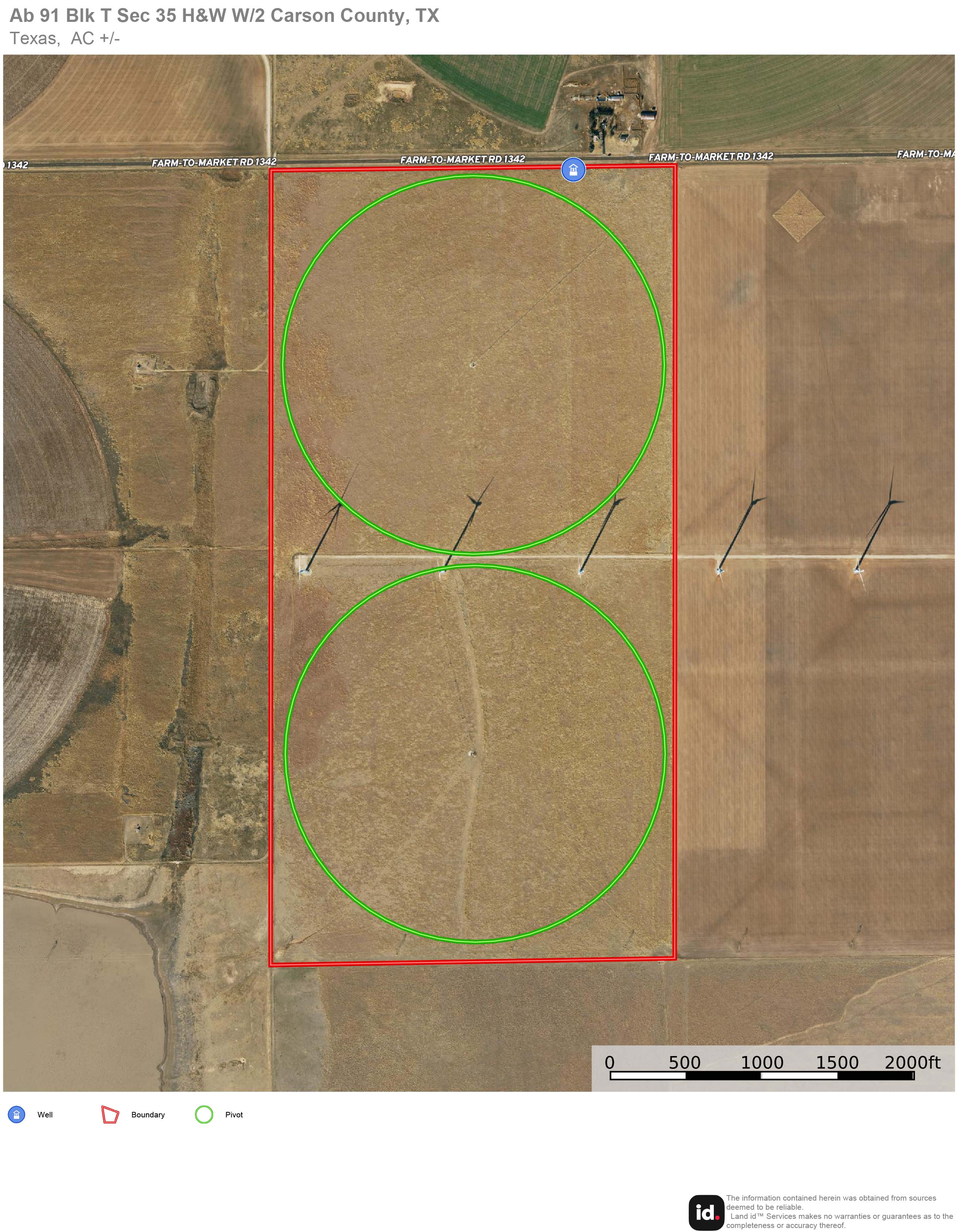 This 320-acre gem, just 10 miles northwest of Panhandle, TX, presents a unique chance to own a prime piece of Texas land with potential for both agricultural and grazing ventures. The property, featuring predominantly Pullman Clay Loam soil and currently planted with blue stem grass, includes valuable improvements such as an 8-tower Zimmatic sprinkler and a 10-tower Reinke sprinkler from the 1980s. The one irrigation well on the north end will be flow tested to confirm its groundwater potential. According to the Panhandle Groundwater District, wells in the area typically report static water levels of 200-400 feet and depths to red clay ranging from 750-950 feet. The property also features well-maintained 5-wire fencing and a livestock watering tank. While wind turbines run across the land from west to east, please note that the wind rights will not transfer with the sale. All owned mineral rights will be conveyed to the buyer. This property offers exceptional flexibility for continued grazing or conversion to farming, making it an ideal investment for agricultural or ranching enterprises.