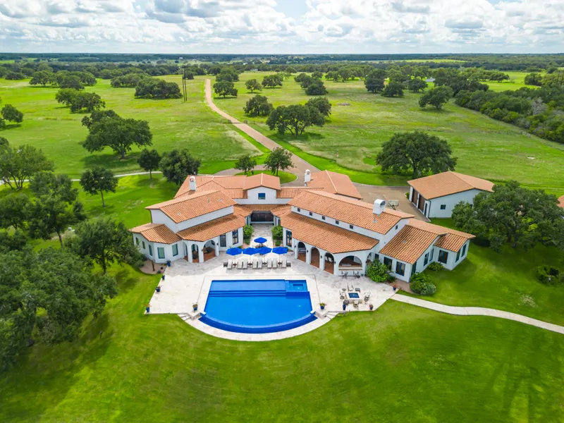 The beautiful Casa de Azul Ranch overlooking the Coleto Creek valley is located between the towns of Goliad and Cuero. The ranch has huge live oaks dotted along the well-kept grasslands giving the ranch a park-like setting. The main house on the ranch is an exquisitely appointed home built for entertaining, and family gatherings, and a place to relax and enjoy the tranquility of big ranch country. The housing compound includes a guest home, a large outbuilding, a huge pool/patio area overlooking the valley, a professional skeet range, and a large playground with a treehouse and trampoline for the kids.