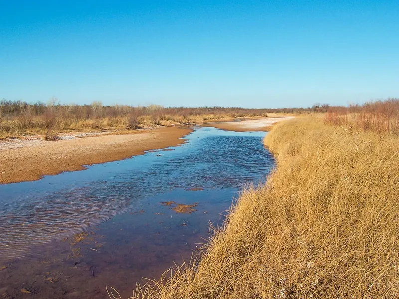 Brush cover is generally provided by mesquite with hackberry trees being scattered throughout the ranch, as well as some willow and elm thickets. Cottonwood trees grow along the banks of the river.