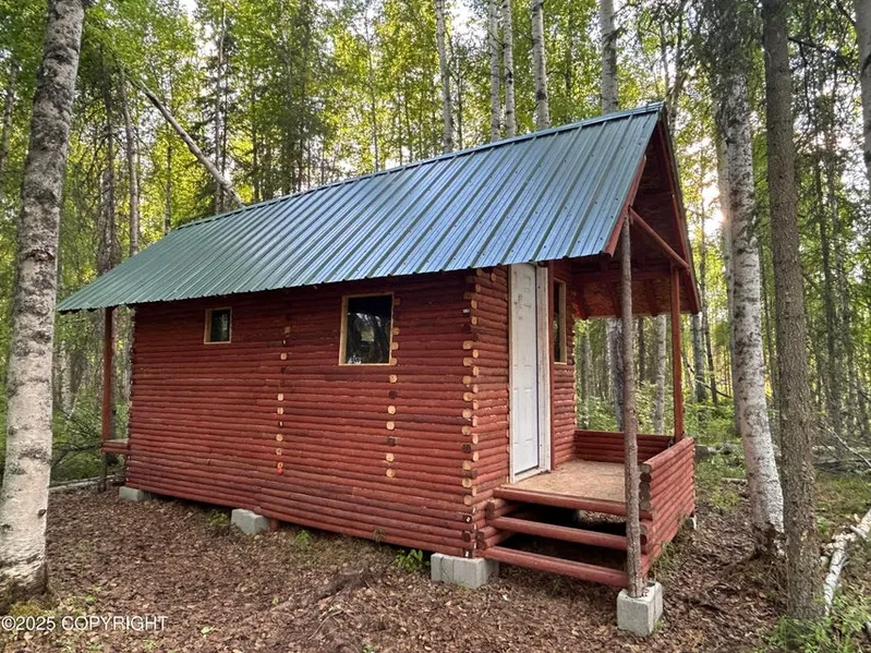 Off-grid recreational dry cabin in Willow—perfect for a simple getaway! This 8'x16' cabin sits on a corner lot and features a covered front porch, newly added lights, outlets, and carpet with basic generator-ready electric. An outhouse is also included on the property. With no CCRs, you'll enjoy flexibility to use the land as you wish. A great spot to get out of the weather and enjoy year-round