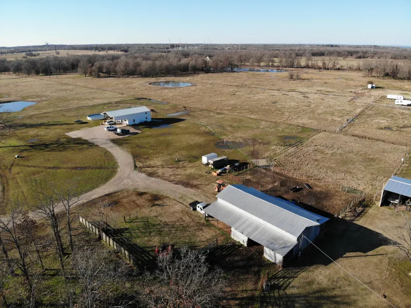 This property offers a 2,600+/- ft airstrip for private use. The property is primarily used for its hay production, yielding approximately five round bales per acre of mixed Bermuda and Johnson grasses. A 6,000 square foot open barn is capable used for additional ranch and farm equipment and recreational vehicles. An abundance of live water on the ranch with livestock ponds strategically located in all pastures and a live creek running through the property. Wildlife is all over the property with whitetail deer, hogs, turkey, ducks and other game consistently visiting.