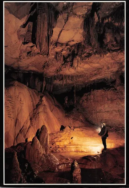 Super CAVE. There is a room as big as a football field, pools, stalactite and stalagmites. Located on 8 acres