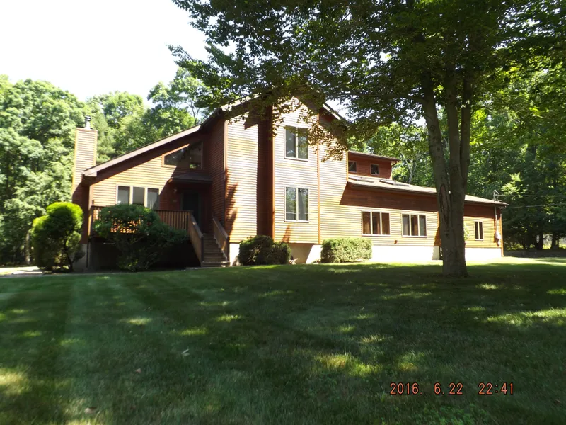 OPEN HOUSE AUGUST 14, 2016 12P-3P. Attractive Contemporary Cedar & Vinyl Sided Home Highlighted By the 1 Acre Manicured Lawn Will Take Your Breath Away. Features Include A Spacious Living Room W/Cathedral Ceiling, Dual Sky Lights, Floor to Ceiling Stone FP & Access to the Deck, Sunken Dining Room Has An Oak Floor & French Door To The Patio, Kitchen Offers A Lg Peninsula,Oak Cabinets New Range, Dishwasher & Microwave & Recessed Lights, 1st Floor Sunken Rec Room W/Sky Lights, Wall Mounted TV's, Wired For Surround Sound. Grand Master Bedroom With WIC, 8 Panoramic Windows & Wired For Surround Sound, 2nd Master BR W/Pocket Door, Window Seat, WTW & Fan, Finished LL In-Law Quarters With Private Entrance, Front & Rear Decks, Patio, Wrap Around Brick Walkway, Circular Driveway & 3-Bay Mechanics Garage.