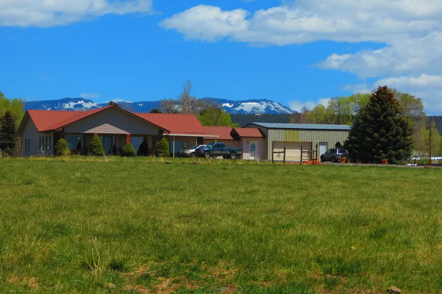 Productive hay and pasture. Currently used as summer grazing from May through October for 170 pairs. Set up for cows with working corrals and winter stock water. Could handle 75 +/- head year around. Great water rights including stored water. Currently open ditch and gated pipe. Nice ranch style home with big windows and views. Low maintenance and low utilities cost. Development potential as it borders the town of Cedaredge.