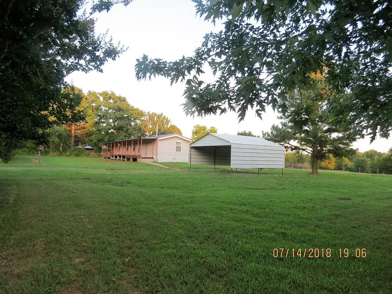 The Clayton Singlewide was built in 1998 and features 3 Br, 2 Ba, split floor plan and open living/dining concept. The kitchen offers dishwasher, vent-hood microwave, electric stove, kitchen snack-bar, corner cabinets at breakfast nook and more. The front 70 feet long, covered porch is everybody's dream! And in the back is another 12 ft long porch with step down to the garden area. There is ample of parking too! Perfect for your RV! A 20'x20' carport is near the house and another 20'x20' is in corner of the property ideal for parking another car or yard equipment or making a chicken pen out of it. Behind the house is 12'x10' storage building which can be utilized many different ways. Then there is the 20'x10' workshop with built-in work benches. Plus there is a barn building with an attached lean, ideal for making animal stalls out of it or use for agriculture equipment. Don't like Storms, there is an underground storm shelter near the house!
