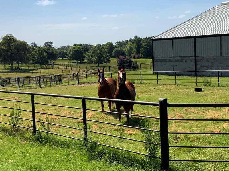 The property is currently set up with 90-plus stalls in two barns, with an arena located next to each barn. Both arenas are covered and lighted. Three Priefert horse walkers a...