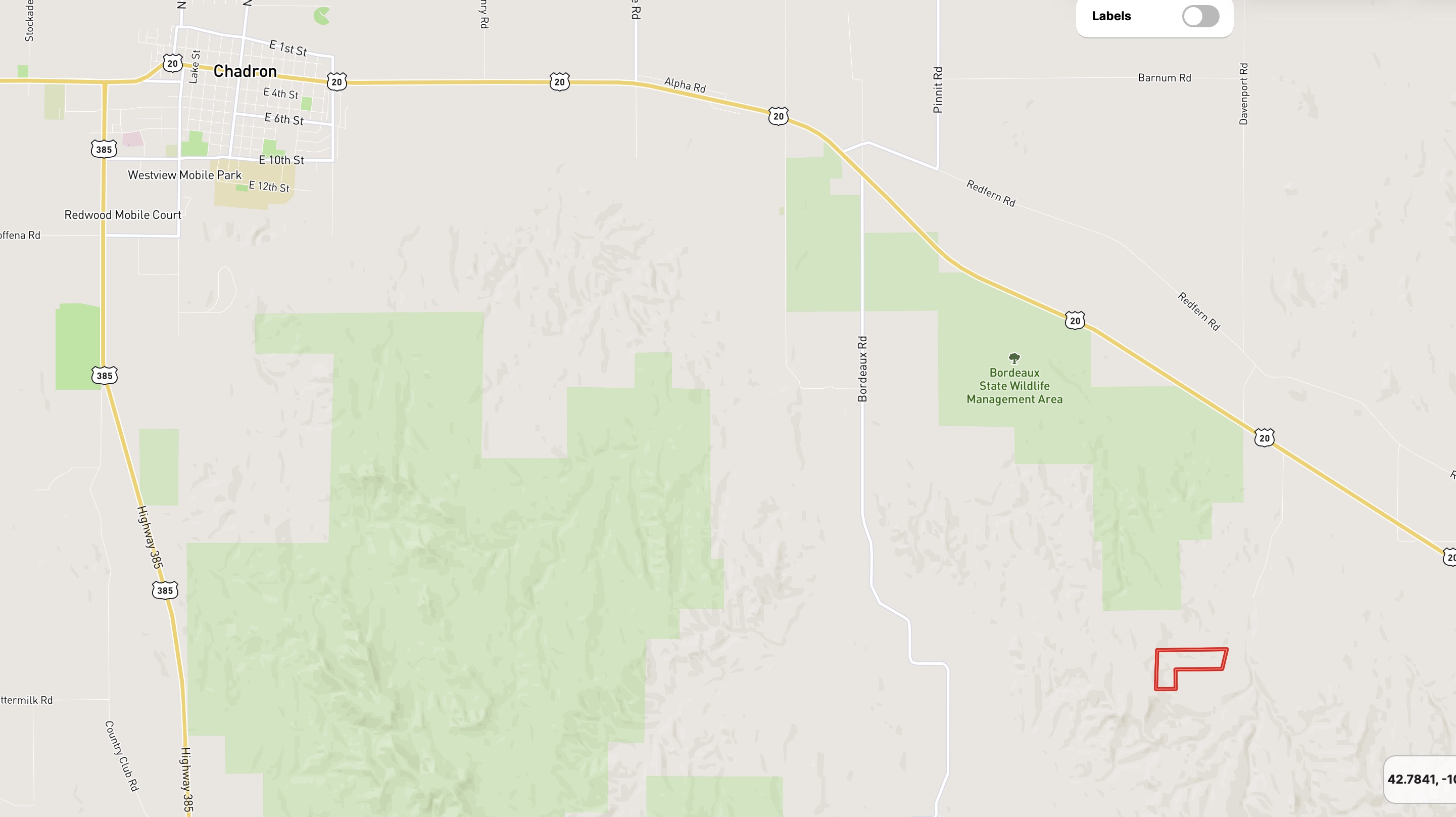 Research Parcel InformationTake Hwy 20 east from Chadron to Shafer Road and go south. At the Y intersection take the left road to another Y intersection and go left to the property.