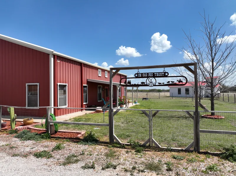 Welcome to your one-of-a-kind ranchette retreat in Comanche Countywhere craftsmanship, comfort, and wide-open Texas skies come together. Nestled on 17 fully fenced and cross-fenced acres, this custom-built barndominium offers 3 bedrooms, 3.5 bathrooms. As well as a Bunkroom, Gameroom, & Office. Ideal for entertaining family and friends or hosting weekend getaways. Inside, the home is rich with character, featuring custom ironwork handcrafted by the owner, thoughtful finishes throughout, and a layout designed for both everyday living and special gatherings. Just outside, a charming chappell sits quietly on the property, easily convertible into a guesthouse, studio, or creative retreat. The spray-foamed barn is outfitted as a turnkey machine shop, complete with washer/dryer, electrical outlets throughout, commercial lighting capability, and RV hookupsready for your tools, toys, or business ventures. Behind the home you will find the solar well, this is used to irrigate the livestock water troughs throughout the property. The home uses city water. Enjoy quiet evenings under the stars, frequent visits from wild turkey and deer, and easy access to Proctor Lake just a short drive awayperfect for boating, fishing, and year-round recreation. Whether you're looking for a peaceful homestead, a hobbyist's haven, or a weekend escape, this property delivers unmatched versatility and value in the heart of Central Texas.