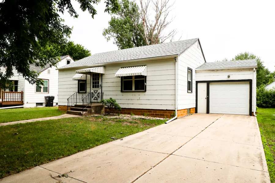 As you walk in the front door, you’ll step into a bright and spacious living room with hardwood floors. Down the hall, you’ll find 2 bedrooms and a full bathroom. The kitchen is on the other side of the living room, and there you’ll find all the appliances you need, included in the sale. The kitchen also has a door that leads to the attached 1-car garage, with an automatic door. The unfinished basement is in great condition, and there you’ll find the furnace (2015), water heater (2020), and water softener (rented). The washer and dryer are also included in the sale, and are currently in the basement; however, there is also a hook-up on the main level.