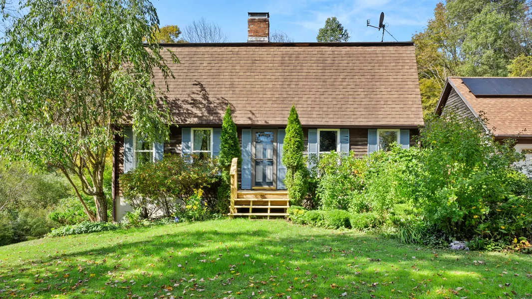 Charming Dutch Colonial on the prettiest piece of land. On the first floor is a bedroom, dining room with wood fireplace, eat-in kitchen with large pantry, half bath. Upstairs are two large bedrooms with full bath. Partially finished basement with two usable rooms and laundry in the utility room. Breezeway/mudroom to attached 2-car garage. Outside is a pool, barn and children's play shed. Solar panels provide electricity. Title V has passed.