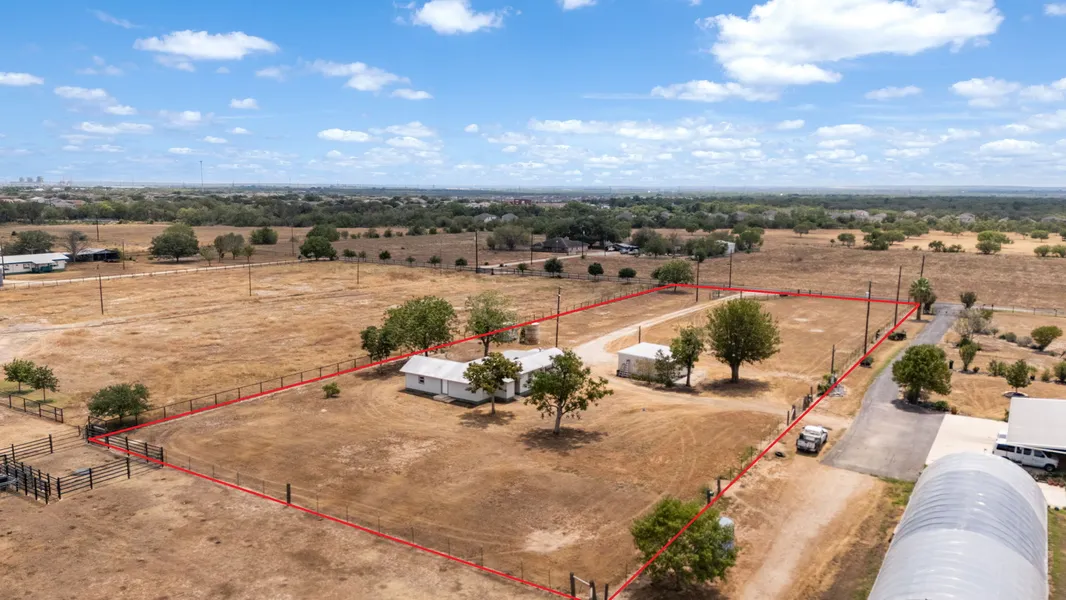 Nestled on 2 picturesque acres located within the city limits of SA and East Central ISD, this charming farmhouse offers a perfect blend of rustic charm and modern updates. With a spacious 1,592 square feet of living space, this home boasts 3 bedrooms and 1 well-appointed bathroom. Step inside to discover a welcoming and expansive living room that seamlessly flows into the open kitchen. The home has been recently updated with fresh exterior and interior paint, new flooring, plumbing and a revamped bathroom and laundry room. Additionally, the house has been leveled. The exterior of the property is equally impressive, featuring a 25x25 carport with electricity. The property is fully fenced on the perimeter, while the covered patio provides a delightful spot to relax and enjoy the serene surroundings. There's also ample space for additional dwellings, making it perfect for those looking to expand or create a family compound. The house is equipped with a septic system, a SAWS water meter, and CPS energy. Although the property includes a shallow water well, it is not currently functioning. There are light restrictions, but they offer flexibility, allowing you to bring livestock, work from home, or even build a duplex at the front of the property. Whether you're seeking a peaceful retreat, a place to work and live, or a versatile property for adding on, this charming farmhouse is the ideal choice.