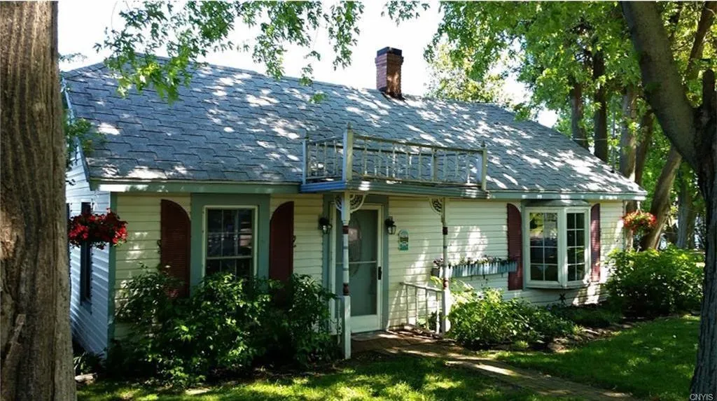 This charming lakeside cottage can be used 4 seasons. Breathtaking views from inside through sliding glass doors that lead from the living/family room as well as from the master bedroom onto extensive decks running the length of the cottage. The decks are elevated over a large concrete dock that includes a built in boat slip and lift with winch that can accommodate a 20 ft. boat. Capacity for guests is increased with a basement level guestroom with built in bunks. Cozy eat in kitchen features a ceramic back splash with a custom inset of Portuguese tile. Private side yard provides yet another sitting area with spectacular views of the Chaumont Bay and beyond. Two car garage/barn provides great storage space. This cottage beckons one to relax and enjoy the pleasures of lakeside living.