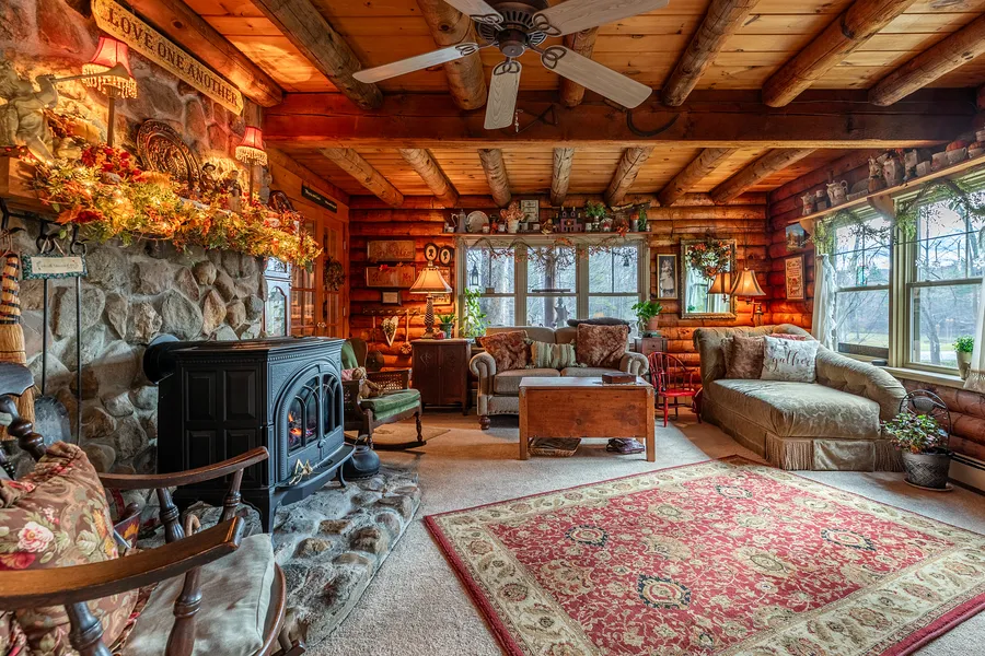 Charming log home with lots of character on 10 acres with winter views. This home offers eat in kitchen/ dining room, open and bright living room and 3 bedrooms on a second floor. Entertain on the back porch overlooking babbling brook and a pond or enjoy gathering around the stove on cold winter nights. This property has been meticulously cared for and updated. Kitchen has granite counters. Close to town with all the joys of country living...the best of both worlds! Enjoy the outdoor activities on your own land. Convenient location between Manchester and Rutland. All measurements are approximate.