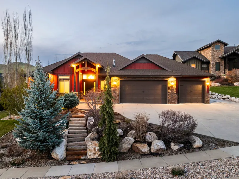 Tucked away in the desirable Cottonwoods community of Mountain Green, this home offers privacy, comfort, and breathtaking views of Snowbasin. The .41-acre property features a backyard that is perfect for outdoor living. Enjoy a pergola, playground, trampoline, basketball court, and twinkling lights. With direct access to neighborhood trails, this lot is ideal for both relaxation and adventure. Inside, you'll find fresh paint, new carpet, and a spacious flex room under the garage, ready for a home theater or any other use you envision. The unique suspended garage adds extra storage, and the home includes RV parking and a peaceful cul-de-sac location. Come see in person all this home has to offer!