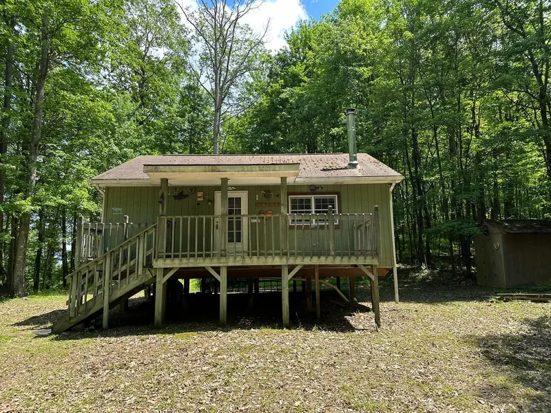 This charming country cabin sitting on a spacious 3.8+/-acre lot surrounded by large hardwoods is a true hidden gem. This property features a 2 bed 1 bath, 700 sq ft rustic cabin beautifully finished with knotty pine tongue and groove with a large front porch to sit and enjoy the beautiful surroundings and plentiful wildlife that frequents the property. The cabin has well, septic and electric and would make the perfect weekend getaway or hunting camp. The property itself is 3.8+/-acres that is comprised mostly of large mature hardwoods with a mostly flat landscape creating the most picturesque setting around the cabin. It also features a nice yard around the cabin that is perfect for gathering around the fire with friends and family. Another unique feature to this property is that it sits only walking distance from State Game Lands giving its new owners the ability to have private access...