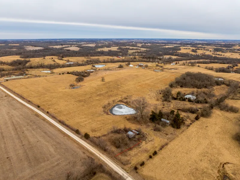 Ample road frontage on two sides with power and rural water availability unlocks several build sites with expansive views of the country side. A centrally located ridge consists of fertile soils for grain, grass or food plot production. Several ponds tucked into the landscape lead into a wooded draw with a hidden field on the southeast corner, perfect for a food plot. Several deer beds and rubs throughout the timbered acres make for good habitat.