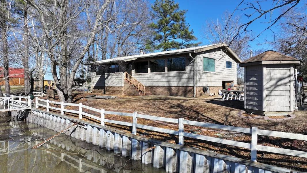 Welcome to your future lakeside retreat nestled along the shores of Maddox Bay, Arkansas. This property offers an exceptional opportunity to own a piece of waterfront paradise. Situated on a big lot with panoramic views of the bay, this home is undergoing a meticulous renovation to transform it into a modern oasis. Enjoy direct access to Maddox Bay, renowned for its abundant recreational opportunities including flooded timber duck hunting, fishing, boating, and wildlife observation.
