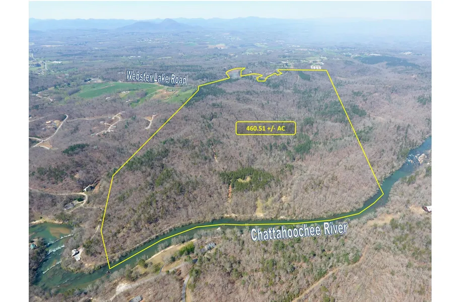The Norton Commercial Group is proud to present this beautiful riverfront acreage tract in southeast White County, GA. This is the perfect recreational or gentlemans estate tract with all the natural amenities to match. The offering consists of roughly 460 acres, mostly wooded and rolling land along with a 21 +/- acre lake at entrance of the property. Webster Lake was created by damming White Creek providing beautiful water features and a great recreational amenity. There is a total of 3,350+/- of frontage on the scenic Chattahoochee River with open event space and river access. Totaling just over 460 acres, this tract is one of the largest privately held contiguous tracts left in all of White County. Excellent road infrastructure throughout the entire property allowing 4-wheel drive travel to most of the Chattahoochee River frontage and multiple access points on either side of White Cre...