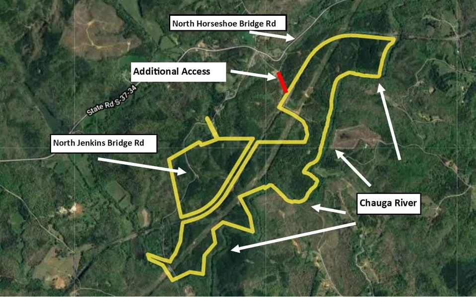 With over 2.5 miles of frontage on the Chauga River, merchantable pine timber and large hardwood bottoms this top notch recreation tract is ready to go. Multiple interior roads provide vehicular access to most areas of the property. Open areas ready to plant your food plots. Two access points from public roads. Convenient location - less than 2 hours from Atlanta, 1 hour from Greenville, SC, 35 minutes to Clemson, SC and less than an hour to Pickens, SC. Conservation easement in place, contact agent for details. This offering includes Tax Map #s 248-00-03-001 (portion), 261-00-01-011, 261-00-01-007 and 261-00-02-014. Taxes have not been calculated and will be determined at closing