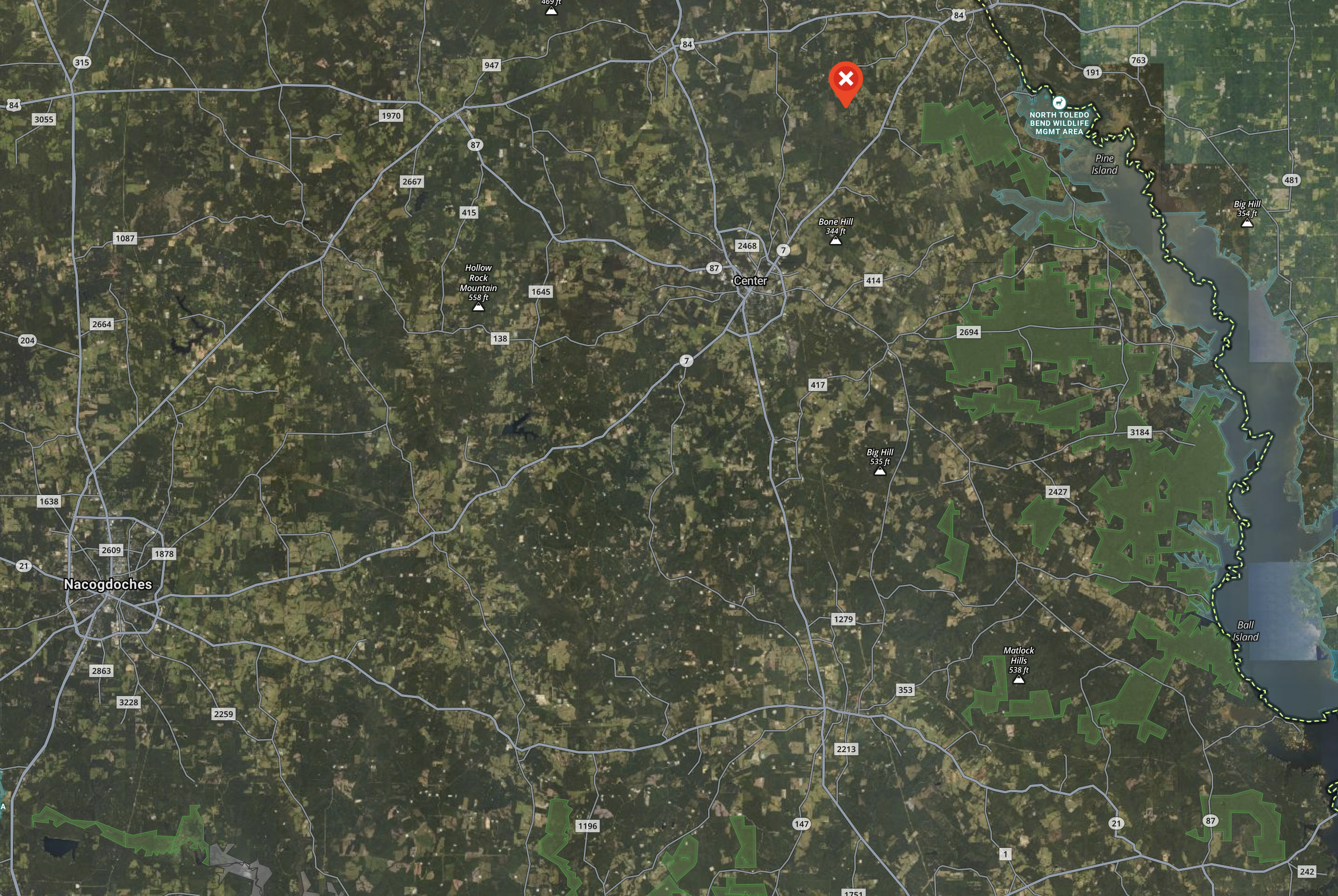 When it comes to location, it doesn’t get much better. The property is tucked away in the quiet, untouched countryside just 10 minutes from Center, TX, and surrounded by large ranches and rolling terrain. It’s only 45 minutes from historic Nacogdoches—the oldest town in Texas—with its college-town energy, cultural charm, and brick-lined downtown.