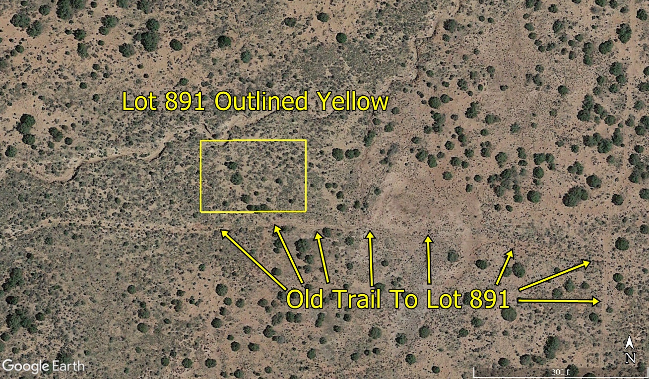 There is a platted road easement along the west side of the property, but it has not been graded in. It looks to us on Google Earth like Lot 891 used to be accessed via trail road from the east, as described in the driving directions.