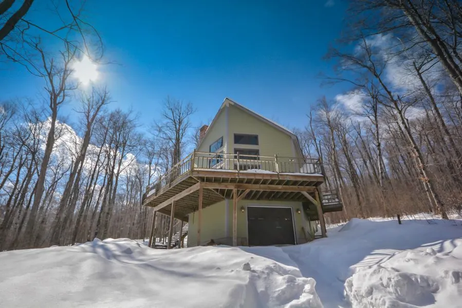 Foreclosed property in the heart of Chimney Hill with beautiful mountain views. This 2007 built home has a large great room with lots of glass overlooking the view, sunny exposure, large deck, wood stove hearth, open kitchen space, balcony with loft, master suite, 2 acre lot, one car garage, and unfinished basement framed to be easily finished for additional square footage. Home is unfurnished and winterized. All appliances and many fixtures have been removed, but the home still has a high end buderus heating system and two double walled oil tanks. Ownership also includes the great Chimney Hill amenities including recently renovated clubhouse with indoor and outdoor pools, game room, hot tub, theater, and more, as well as tennis courts, basketball, ponds, ice skating in the winter, road maintenance, a la carte services for easy home ownership, and direct VAST snowmobile access. At only a...