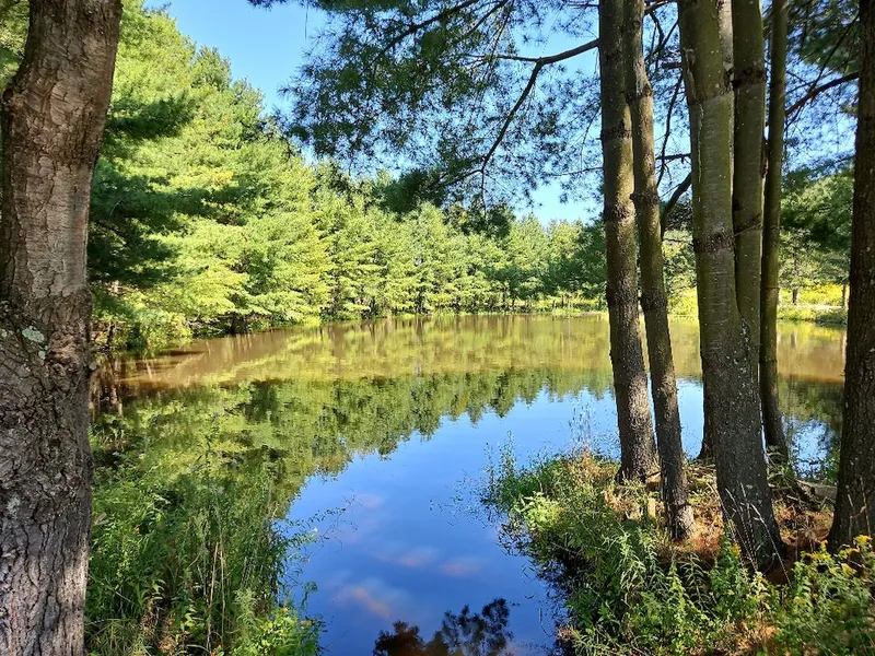 This is a choice hunting property, heavily wooded, with an internal trail system providing access throughout. Wetlands with approximately 2782 feet of stream is set between the open meadows along the road where the barns are located and the gradual hillside that slopes up to the flat ridgeline along the top, creating an ideal habitat for whitetail, wild turkey and other area wildlife, which feed, bed and funnel through as they traverse this property situated between neighboring open ag fields. There are several beautiful ponds, some stocked with largemouth bass. The majority of the property is heavily wooded, with the woodlot containing a mix of hardwoods, including primarily oak and maple, as well as some high-quality pine. There are several open areas that would be ideal for food plots. Wild apple trees are scattered throughout, which provides an excellent food source for the local wil...
