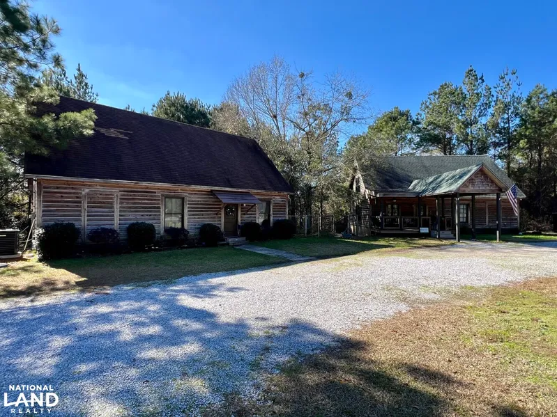 This multi-use residential and commercial compound with acreage is located on Roberts Road & Log Creek in the Chunchula area of Mobile County. The property boasts 38+/- beautiful acres entirely high fenced, two residential custom homes, a 3,000+/- sf warehouse/office/apartment, two dog kennels and four storage barns. Both homes have wood log exterior siding as well as vaulted kitchen/living rooms, with spiral staircases leading to upstairs lofts. The metal building has served as the family business office for many years. Half of the warehouse has been built out into a 1,500+/- sf office/apartment. There is an internal trail system connecting three established food plots & four ponds. Deer, Turkey, Waterfowl & small game are abundant. Enjoy fishing the deepwater ponds & swimming from the sandy banks of Log Creek, which runs the entire south boundary. Don’t miss your chance at this incredi...