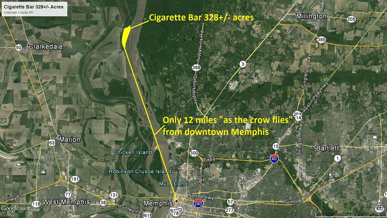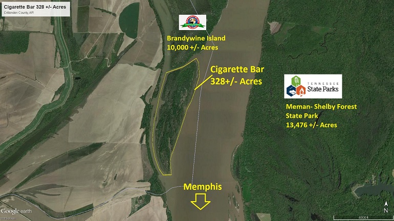 Research Parcel InformationCigarette Bar is only 12 miles north of downtown Memphis and is directly across the river from Meeman-Shelby Forest State Park/WMA. Access to the property consists of a short 3.3 mile boat ride from the Shelby Forest boat ramp.