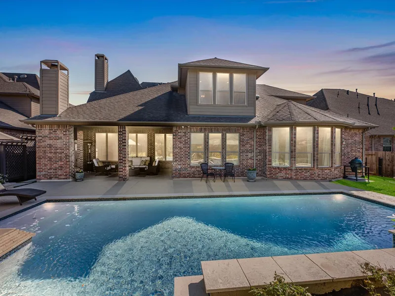 One of the most tranquil backyards in all of Cinco Ranch! Its host is this exceptional Highland Homes created residence, immensely improved by wonderful owners, situated on a premium cul-de-sac home site in the premier Katy community, Cinco Ranch. Pool+Spa, serene landscaping w/ privacy, expansive covered patio w/ outdoor fireplace. The residence offers a 3-car garage w/ epoxy floors, a sprawling 4,400sqft living design, featuring 5 bedrooms, 5 full baths, & 2 half baths. Two Bedrooms on first floor, including primary suite w/ a custom designed walk-in closet! Functionality does not lack, offering an executive study, built-ins throughout the home, an upstairs game room w/ additional living area, & media room. The expansive kitchen anchors the open concept design w/ an oversized island, premium surfaces, custom pantry storage, and seamless flow to the main living space, characterized by t...
