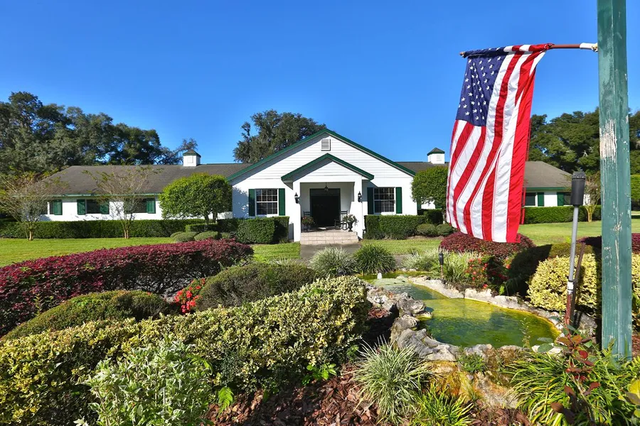 Guest/Employee home is a 3/2 home. Screen enclosed lanai. 2-car garage. Mature pristine landscaping surround the center aisle barn has a total of 18 stalls, 2 offices, laundry area, tack room, feed room plus wash bay. 60 Round pen, 50 round pen, 6 horse European free walker, equine swim lane which is 30 wide, 135 long, 16 feet deep with ramps at both ends. Arena with lights (250 x 150), cattle shoot, air release for roping, pen for working cattle plus small house with restroom. Equipment building (16 x 45) features 4 bays plus attached air-conditioned storage room area. Generator operates the barn & well. Pole barn with 8 bays.