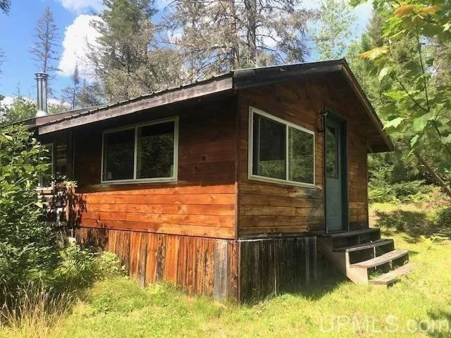 Here is a classic Upper Peninsula camp situated on 40 acres in Republic Township. The property is easily accessible via a well maintained private trail road; yet very secluded and "away from it all". The cabin has an open concept layout with a conventionally framed living room addition in the front that leads to the original log cabin. The original cabin consists of a dining area, kitchen, and sleeping quarters in the back. No UP camp would be complete without a sauna, massive wood shed, and outhouse; this property has all the bases covered. Sitting just beyond the cabin is a small spring feed pond and creek that runs through a majority of the property. A smooth trail road also transverses the Eastern edge of the property leading to hundreds of acres of public commercial forest land which borders the property to the South and West. The land itself has a mixed terrain with several high ridges that really showcase the beauty of the land. No legal easement recorded. Call today to make an appointment, these classic camps are getting harder to find! MLS# 1128973