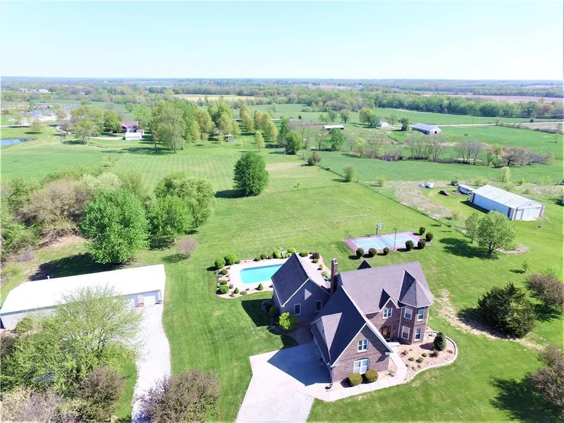 2 Story 4 bed 3.5 bath on 6.8 acres in Kearney School district. All new updates throughout. Brand new custom plantation shutters on 1st floor. This is a kids paradise. Indoor basketball court, outdoor lighted sport court with backstop & pickle ball. In-ground 20x40 pool & a 6 person hot tub. Outdoor stone kitchen with built in grill & refrigerator. Basement finished with granite top bar, refrigerator & kegerator. Safe room in basement. 1st floor & dual staircase is solid oak flooring. Geothermal heat pump.