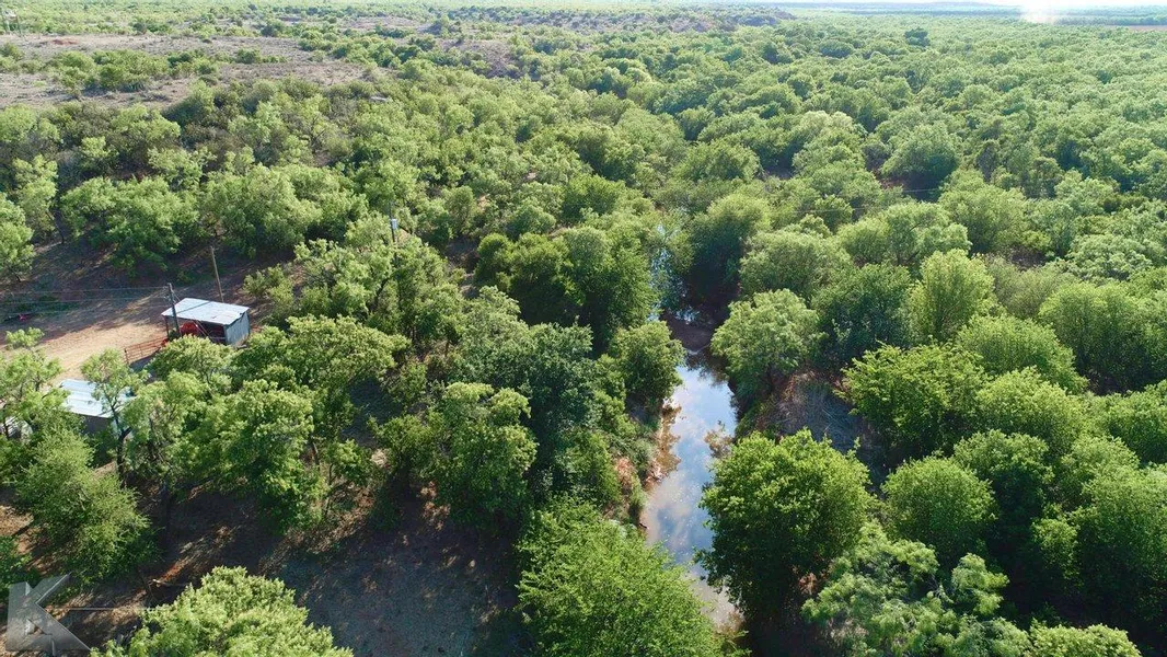 45 acres is native pasture that is elevated and hillyproviding views to Abilene and Excellent hunting as it slopes down the Clear Forkof the Brazos River.