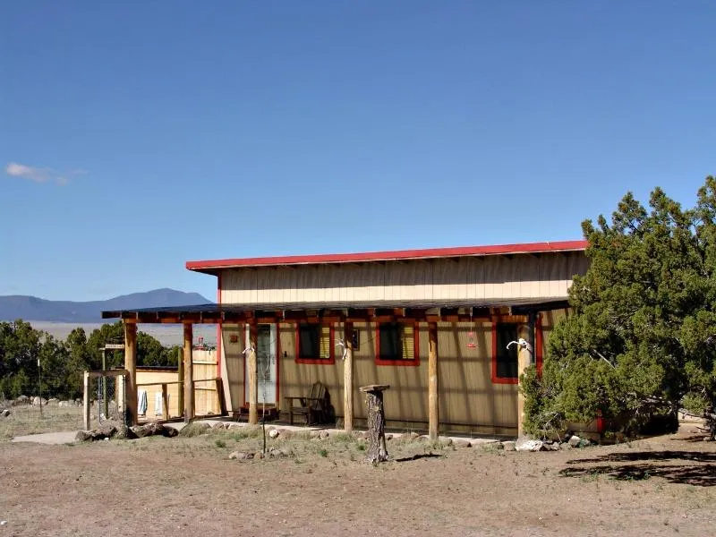 The site built home is situated above McAllister Draw near Quemado, NM. Containing 1,000 sq. ft.+/- of living space, with 1 bed/1bath, living/kitchen area, utility and water storage room. Indoor features include custom made cabinets, ceramic flooring and most of the furniture. Outdoors include a 400 sq. ft. shop. Containing 160 deeded acres the ranch has a