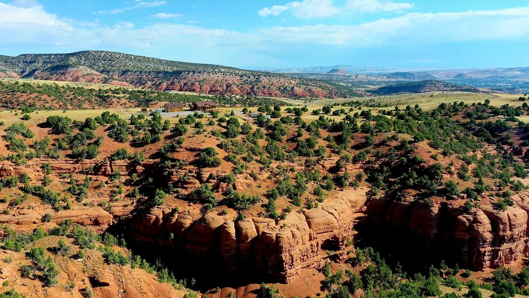 Location: This top of the mountain view is located just 4 miles south of town overlooking the Bighorn River and townsite of Thermopolis. 360 degree views of Stagner Mountain, the Wind River Canyon and Wedding of the Waters, Monument Hill, Round Top, and the snow capped Bighorn Mountains in the distance. This vast and scenic landscape is visible from very few accessible locations.The 20 acre property is surrounded by the solid red cliffs of the Wests iconic Chugwater formation and its juniper-covered red hills. This is the scenic southern end of Wyoming's Bighorn Basin. The clear views and the striking contrast of the colorful landscape is classic American West.