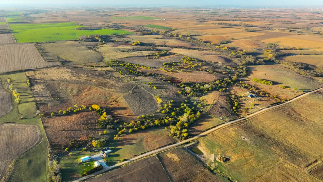 This property sits in north-central Kansas, just south of Concordia in the rolling prairie of Cloud County. The area is known for its mix of productive farm ground, strong native grass pastures, and wooded creek draws that make it prime country for both ranching and hunting. The region averages around 29 inches of annual rainfall, 17 inches of snow, and roughly 225 days of sunshine each year, providing a balanced climate that supports healthy grass and strong wildlife populations.