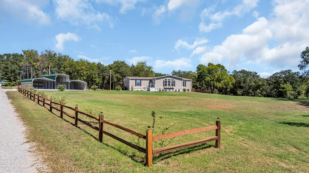 With two double carports (one designed for a shop) and a single camper port, there is lots so space for your tractor and equipment. A cute storage building that matches the house, a deep well with plenty of water, a chicken house with water and electricity close by, 7 outdoor freeze proof hydrants, beautiful Bermuda grass and landscaping complete this wonderful home in the country.