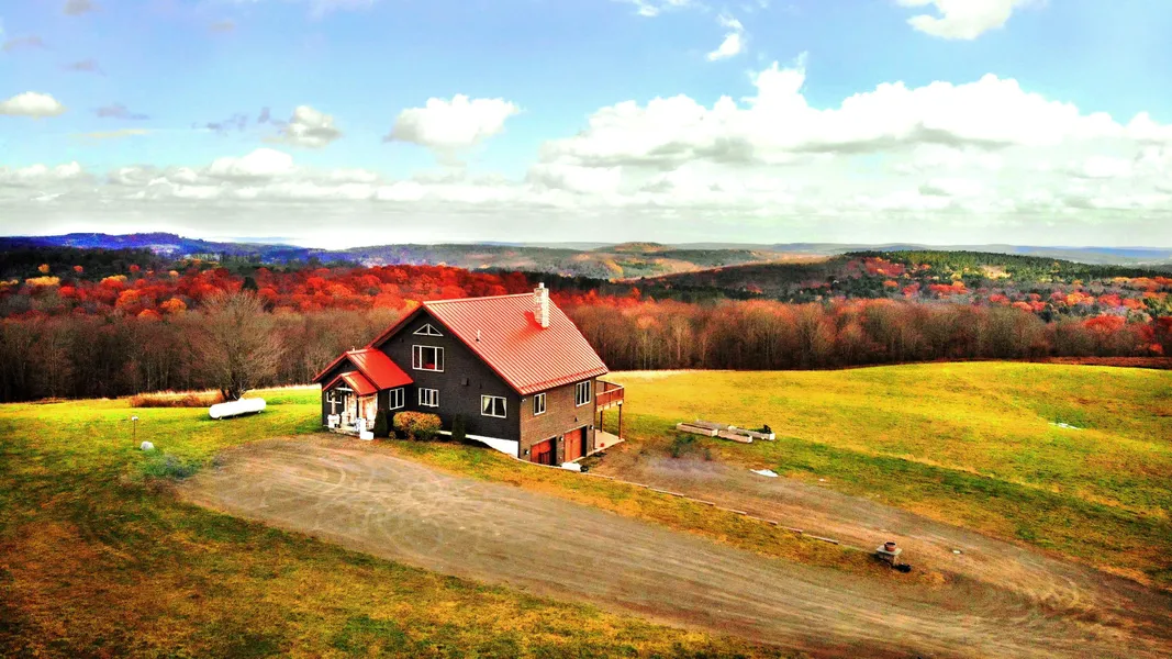 If you're looking for an extremely high quality home with PANORAMIC VIEWS then you've found it. Marvel at the long distance VIEWS from every room inside this 3 bedroom 3 1/2 bath Mountain Home all on 25 acres BORDERING STATE LAND! Guaranteed to please you and impress your guests! This timber peg post and beam home features the highest quality construction. No corners were cut when finishing the beautiful interior. Solid poured concrete foundation, western red cedar siding and a true standing seam steel roof with stone features. The utilities are high efficiency and of commercial grade. Step inside through the mud room with washer and dryer. Then into a true CHEF'S kitchen featuring granite counter tops and custom lighting. Features include Sub Zero freezer/fridge, Wolfe 4 burner top with griddle, grill and electric range with artistically designed custom copper range hood. A huge island complete with drawer style micro wave. All of this surrounded by custom hardwood cabinets offering plenty of storage. The living quarters are nothing less than fantastic and have a natural and relaxing feel, whether upstairs or down. The main level features an open floor plan with combined kitchen, living and dining room designed to entertain and enjoy the VIEWS at every angle from every room. Double sided fireplace between the living room and den. Separate en suite bedroom, office, second bedroom and full bathroom. Upstairs from the main floor is the loft featuring a half bath and wet bar with million dollar VIEWS through the huge picture windows. The lower level of the home is well appointed and will nicely accommodate family or guests. Featuring a full bathroom, living room with two hideaway beds and plenty of closet space. From here, you can walk directly out onto the stone patio and BBQ area. The attached garage will be a welcome space when you come back from shopping or work. Conveniently located just 10 minutes to the County Seat in Norwich, 30 minutes to Oneonta and 3 hours from NYC. Schedule an appointment to view this amazing and unique home for yourself!