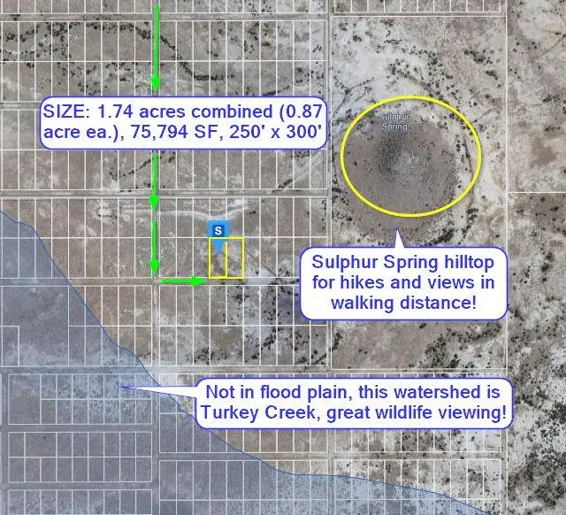 Large 1.74 acre double acre lot in Cochise, Arizona, no HOA and not in a flood zone, great for camping, 85 miles to Tucson with legal dirt road access 4 miles from Highway 191, in walking distance to Sulphur Spring, an elevated hill with panoramic views of Turkey Creek that flows through this area creating a wildlife sanctuary and great seasonal bird watching. Call to order today!